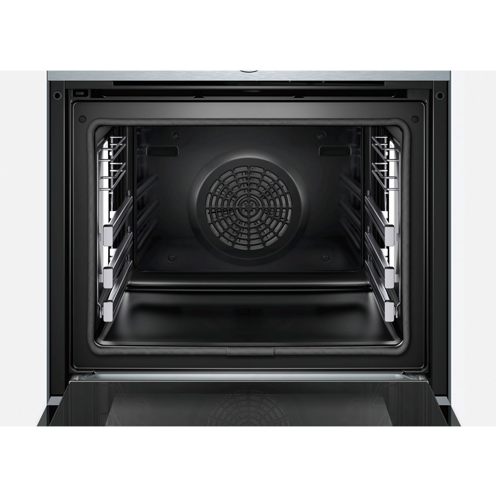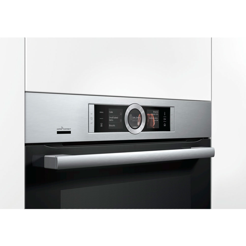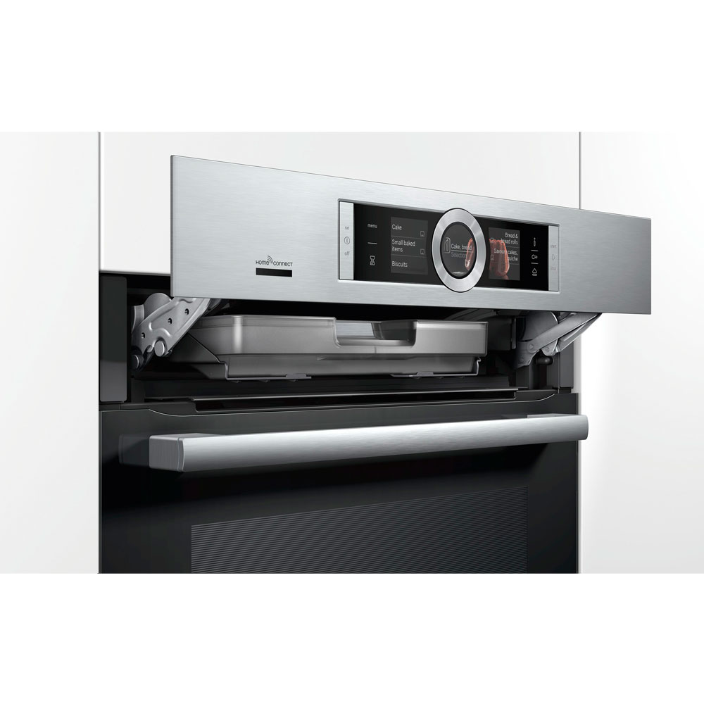 MULTIF. 15 FUNCIONES. CRISTAL NEGRO/INOX. HOME CONNECT. 71 LITROS. "A". CON VAPOR AÑADIDO. PIROLISIS. APERTURA ABATIBLE. DISPLAY TFT CON IMAGENES Y TEXTOS. ASISTENTE DE COCINADO. RELOJ ELECTRONICO CON PROGRAMACION DE INICIO Y PARO. RAILES 3 NIVELES 100% EXTRAIBLES Y PIROLIZABLES. ARO CENTRAL. SENSOR PERFECTBAKE. TERMOSONDA PERFECTROAST. SOFTMOVE.