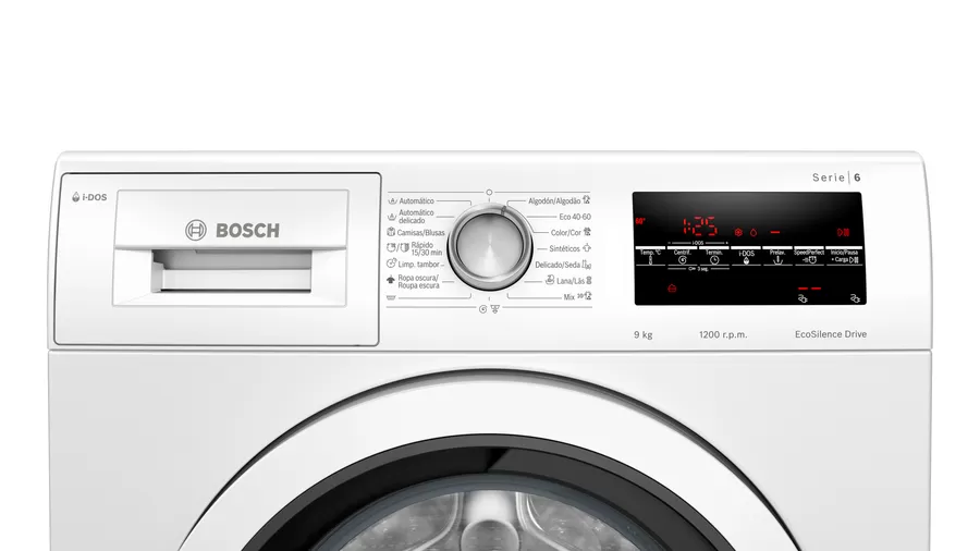 BOSCH, WAU24S42ES, Lavadora, Carga frontal, A+++-30%, Libre instalación, 60 cm., 9 kg, 1.200 rpm, Blanco, i-DOS, motor EcoSilence, Display LED touch con recomendación de carga, SpeedPerfect, instalación bajo encimera en mueble altura min. 85 cm.. Pausa+Carga