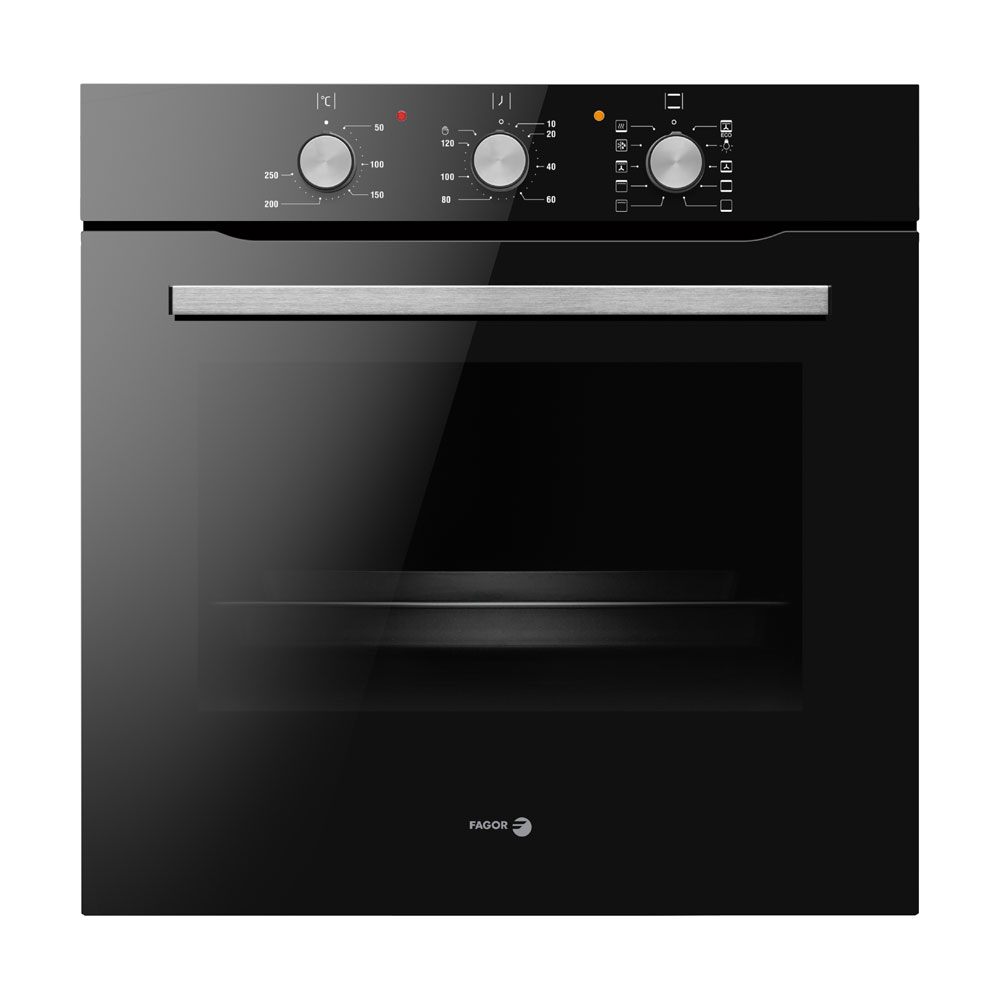 MULTIF. 9 F. 77 L. NEGRO. "A". CONTROL MECANICO. PUERTA 3 CRISTALES. 1 GUIA TELESCOPICA CON GUIAS LATERALES. BANDEJA PROFUNDA Y PARRILLA. LIMPIEZA POR VAPOR STEAM CLEAN.