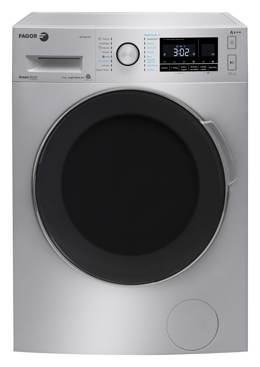 1200 RPM. 8 KG. ACERO INOX. "A+++". 16 PROGRAMAS. CONTROL ELECTRONICO. GRAN DISPLAY. INICIO DIFERIDO. AUTOLIMPIEZA. FUNCION AÑADIR PRENDA. LAVADO VAPOR STEAM TOUCH. MOTOR BLDC DE ALTA EFICIENCIA. PUERTA CON PROTECTOR TERMICO DECORATIVO.