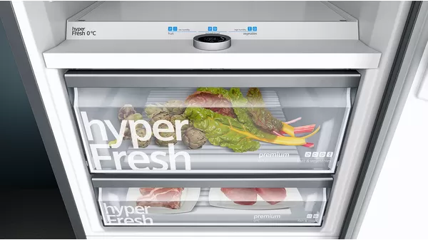 SIEMENS, KG39FPXDA, Frío, Frigorífico combinado NoFrost, A+++, Libre instalación, 203x60x66 cm., 343 l., HC Ready, Puertas Black inox antihuellas, Zona hyperFresh Premium 0C. Electrónica en la puerta.