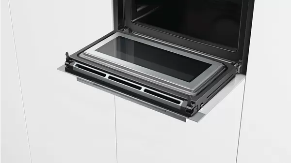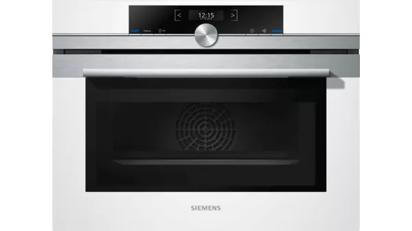 SIEMENS, CM633GBW1, Compacto, Multifunción con microondas, Encastrable, 45 cm., 45 l., 6 F, Abatible, Cristal blanco/inox, Display TFT, cookControl (14 recetas), Reloj electrónico con programación de inicio y paro, Mandos acero inoxidable, softMove