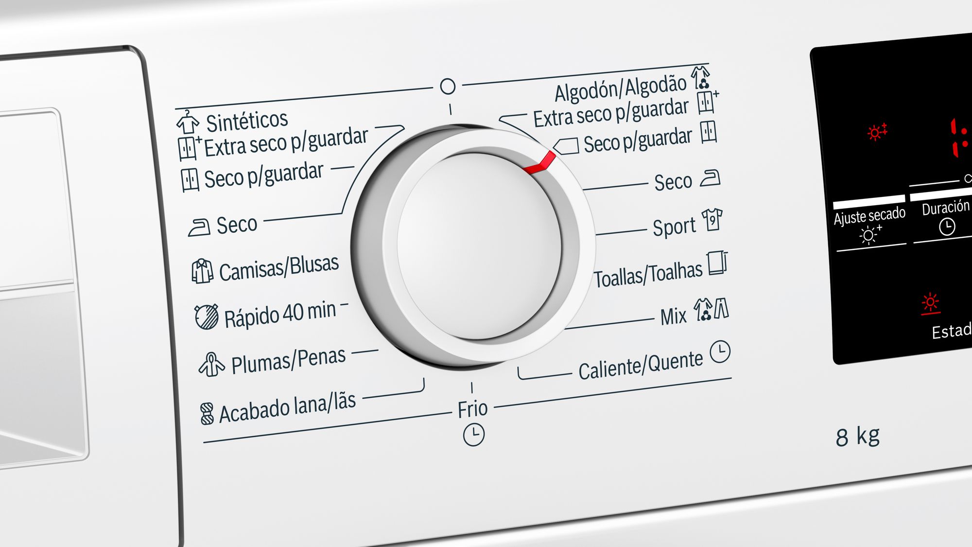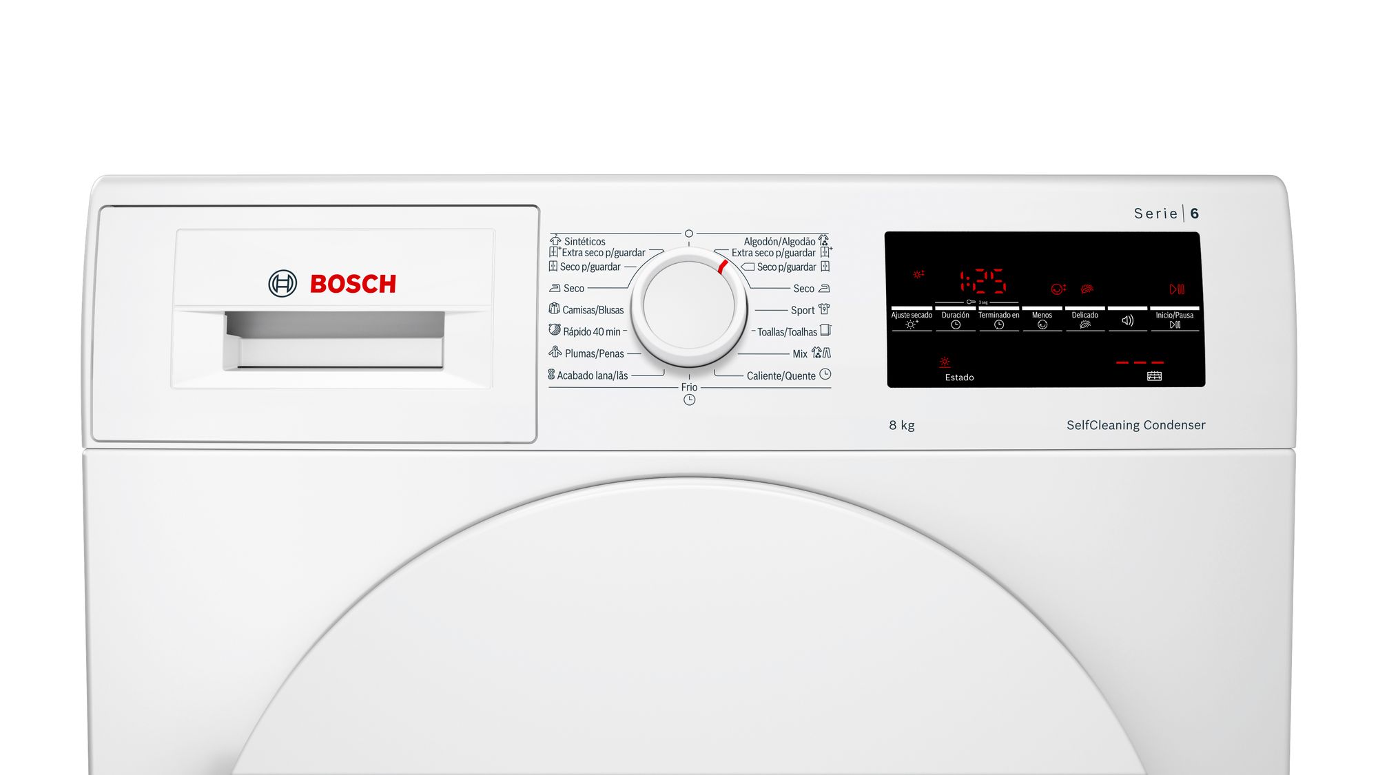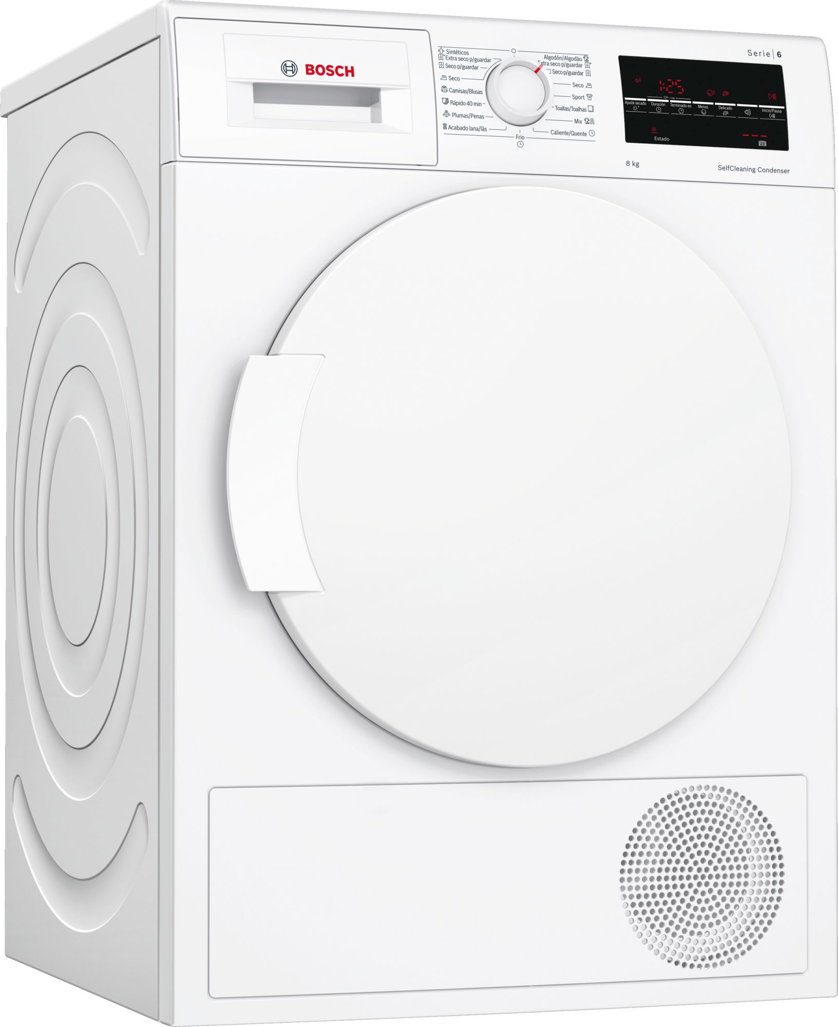 8 KG. BOMBA DE CALOR. BLANCO. "A+++". DISPLAY LED. CONDENSADOR AUTOLIMPIANTE. LUZ INTERIOR DEL TAMBOR. PROGRAMACION DIFERIDA. INDICACION DEL TIEMPO RESTANTE. TAMBOR INOX CON PALAS ASIMETRICAS. POSIBILIDAD DE CONEXION A DESAGUE CON TUBO INCLUIDO. AJUSTE DE GRADO DE SECADO MEDIANTE SENSORES.
