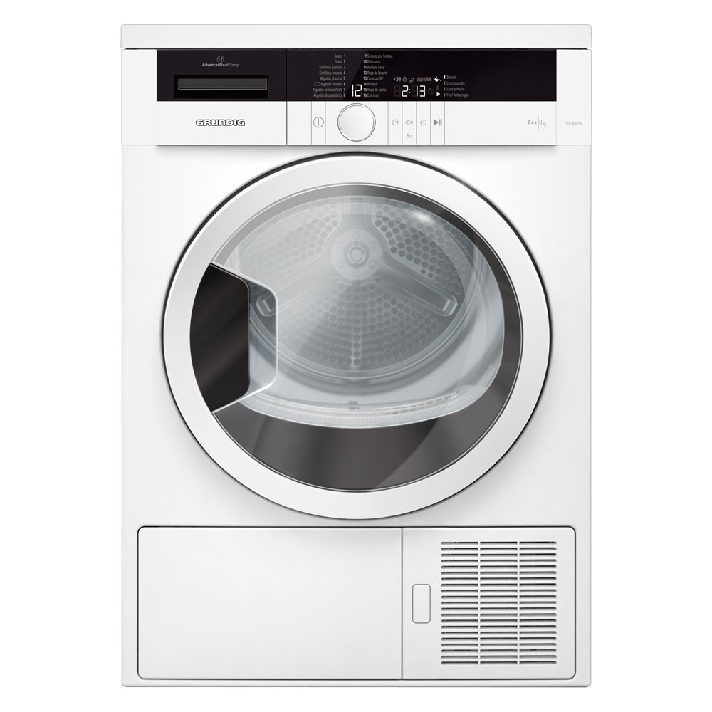 8 KG. 16 PROGRAMAS. BOMBA DE CALOR. BLANCO/PUERTA CRISTAL. "A++". DISPLAY DIGITAL. BOTONES TOUCH CONTROL. TAMBOR ACERO INOX. INICIO DIFERIDO HASTA 24 HORAS. LUZ INTERIOR. PUERTA EXTRAGRANDE. ANTIARRUGAS AUTOMATICO. OPCION DESAGUE DIRECTO.