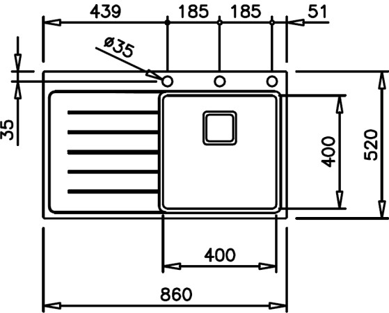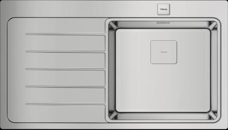 1 CUBETA 1 ESCURRE. INOX. A DERECHA. MUEBLE 50 CM. ACERO INOX 18/10. RADIO CUBETA R15. DESAGUE AUTOMATICO CUADRADO CON VALVULA CANASTA 3 1/2" Y SIFON. TAPA DECORATIVA INOX CUADRADA. CHAPA DE GRAN ESPESOR. SILENTSMART. PROFUNDIDAD DE LA CUBETA 200 MM.