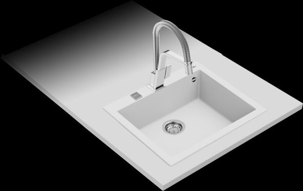 1 CUBETA. TEGRANITE BLANCO. MUEBLE 60 CM. ACABADO NO POROSO. DESAGUE AUTOMATICO CON VALVULA CANASTA 3 1/2" Y SIFON. PROFUNDIDAD DE LAS CUBETAS 200 MM.