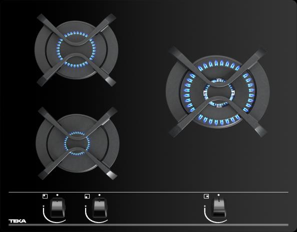 3 GAS. NATURAL. CRISTAL GAS. CRISTAL REDONDEADO. SUPERFICIE DE VIDRIO TEMPLADO. MANDOS FRONTALES. SEGURIDAD POR TERMOPAR INTEGRADO EN QUEMADOR INDIVIDUAL. AUTOENCENDIDO INTEGRADO EN QUEMADOR Y ACCIONADO POR EL MANDO. PARRILLAS DE FUNDICION INDIVIDUALES. SISTEMA DE FACIL INSTALACION FAST-CLICK.